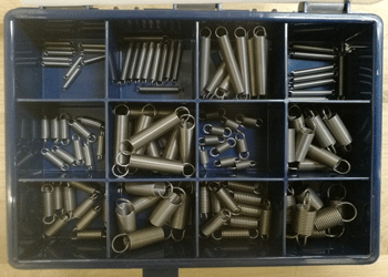 | Descripción del contenido | Muelle de extensión - 12 tamaños diferentes de la gama A. Alambre de piano. |